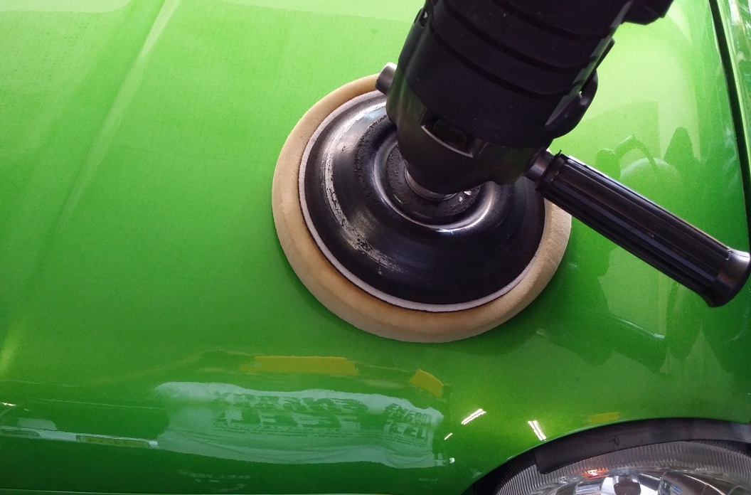 塗装の状態を見て目の粗いコンパウンド、バフから使用し、少しずつ少しずつ丁寧に磨いていきます。丁寧に磨いていく事により色に深みと艶が増していきます。鏡面反射状態になる様仕上げていきます。